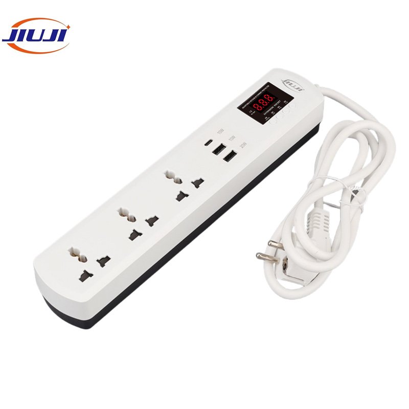 This power strip with voltage and current protection is built to safeguard your electronics from voltage spikes, overloads, and abnormal current flow. It features three versatile outlets, including USB Type-C fast charging ports, providing a quick and efficient power solution for modern devices. The sturdy, flame-retardant housing ensures durability and safety, while the high-quality, full-copper wiring guarantees reliable performance and energy efficiency. Perfect for both home and office use, this power strip ensures safe and reliable power distribution for a wide range of devices.