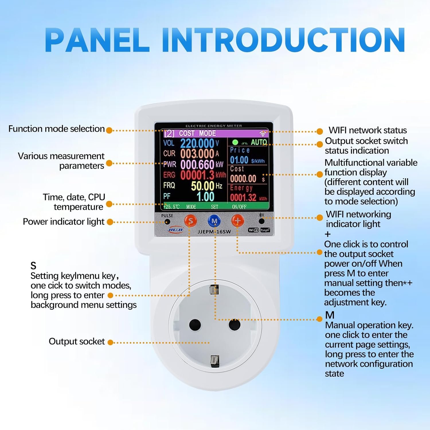 Smart Energy Protector Socket combines energy monitoring, cost control, and safety protection in one device. It supports real-time display of voltage, current, power, energy, frequency, and power factor. With prepaid electricity mode, it cuts off power once the set consumption is reached. Built-in over-voltage, under-voltage, and over-current protection ensure safe operation, while multiple timer modes allow flexible power scheduling. Compact, efficient, and reliable, it is ideal for home and commercial use.